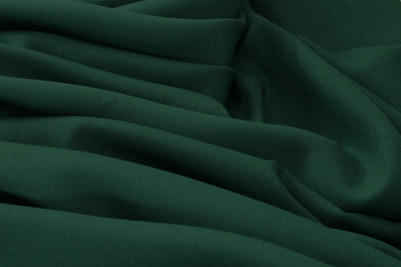This dark green colored Polyester Poplin fabric features a smooth, tightly woven texture with a matte finish and minimal sheen. Its noticeable crispness and structured feel make it ideal for tailored garments and projects requiring clean lines and durability.
