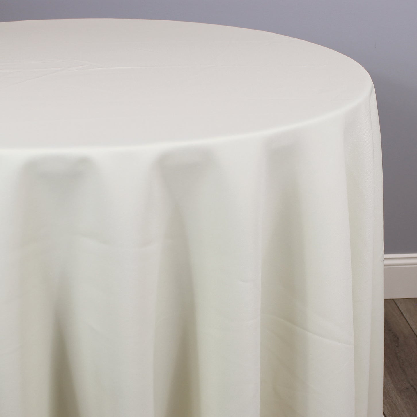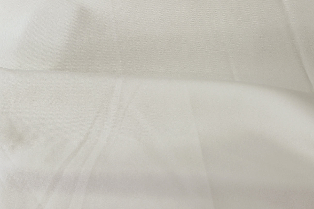 This ivory colored Polyester Poplin fabric features a smooth, tightly woven texture with a matte finish and minimal sheen. Its noticeable crispness and structured feel make it ideal for tailored garments and projects requiring clean lines and durability.