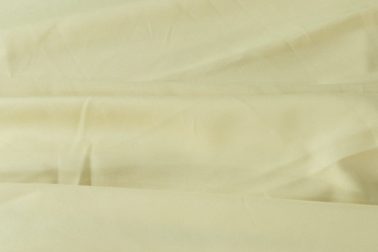 This light yellow colored Polyester Poplin fabric features a smooth, tightly woven texture with a matte finish and minimal sheen. Its noticeable crispness and structured feel make it ideal for tailored garments and projects requiring clean lines and durability.