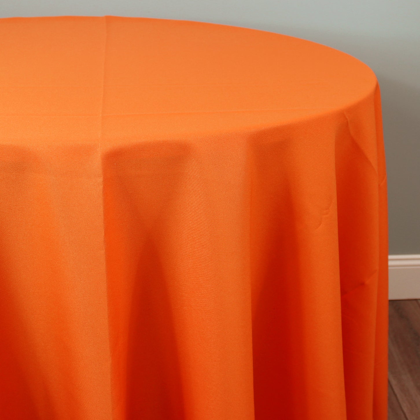This orange colored Polyester Poplin fabric features a smooth, tightly woven texture with a matte finish and minimal sheen. Its noticeable crispness and structured feel make it ideal for tailored garments and projects requiring clean lines and durability.